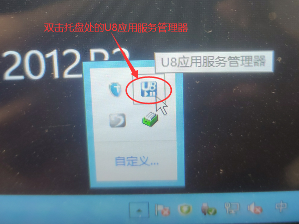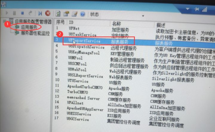 远程登入U8服务器,双击托盘处的U8应用服务管理器,点击【应用服务→报表服务】,在报表服务窗口勾选使用IP地址,点击确定。